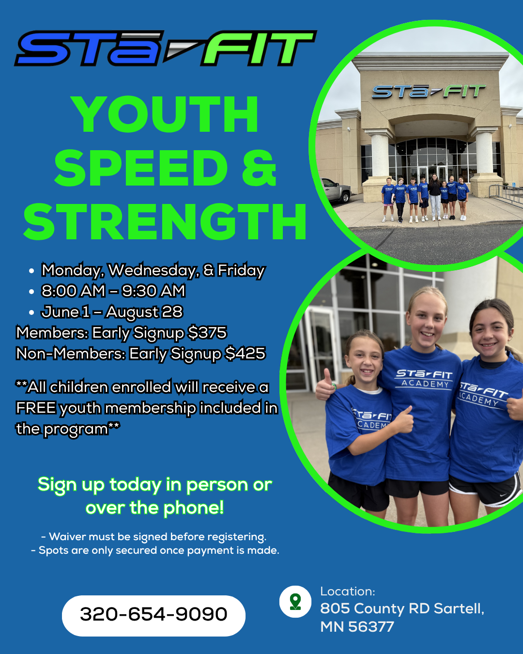 Call us for more information (320) 281-7439.